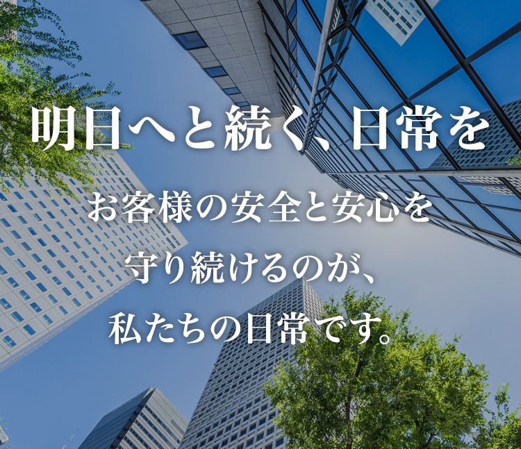 「安心・安全」な社会の確立が急がれる今日、強い使命感と高い機動力を持ってお客様の「安心・安全」をサポート致します。